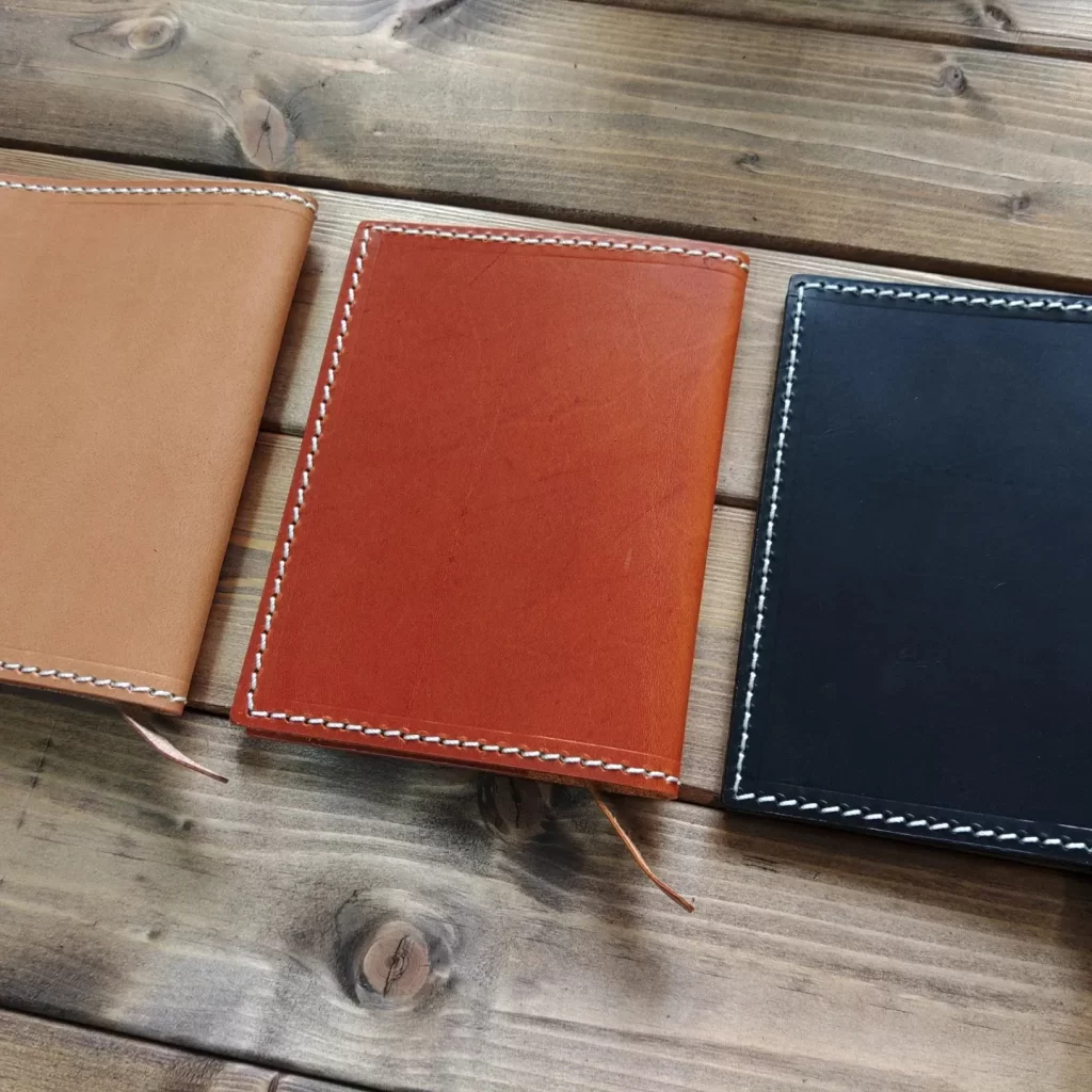 極太糸極厚ヌメ革ブックカバー再生産しました P 2025年7月9日 , by dlp K D.L.P. ブログ 販売してからずっと売れていなかったので在庫がなくなったら再生産をするつもりがなかったのですが、今年からなぜか売れ始め在庫がなくなったのでそれをもって販売終了しました。 それでも数人のお客様から作ってほしいという要望があり、残っている革で作れる分だけ作ってみました。 要望があったお客様にはお渡ししたので、その残っている分を自社販売サイトにて販売します。 3色それぞれ数本しかないので希望の方はお早めに注文してください。 なお、ベージュは革が若干色が濃くなっているのでそれはご了承ください💦