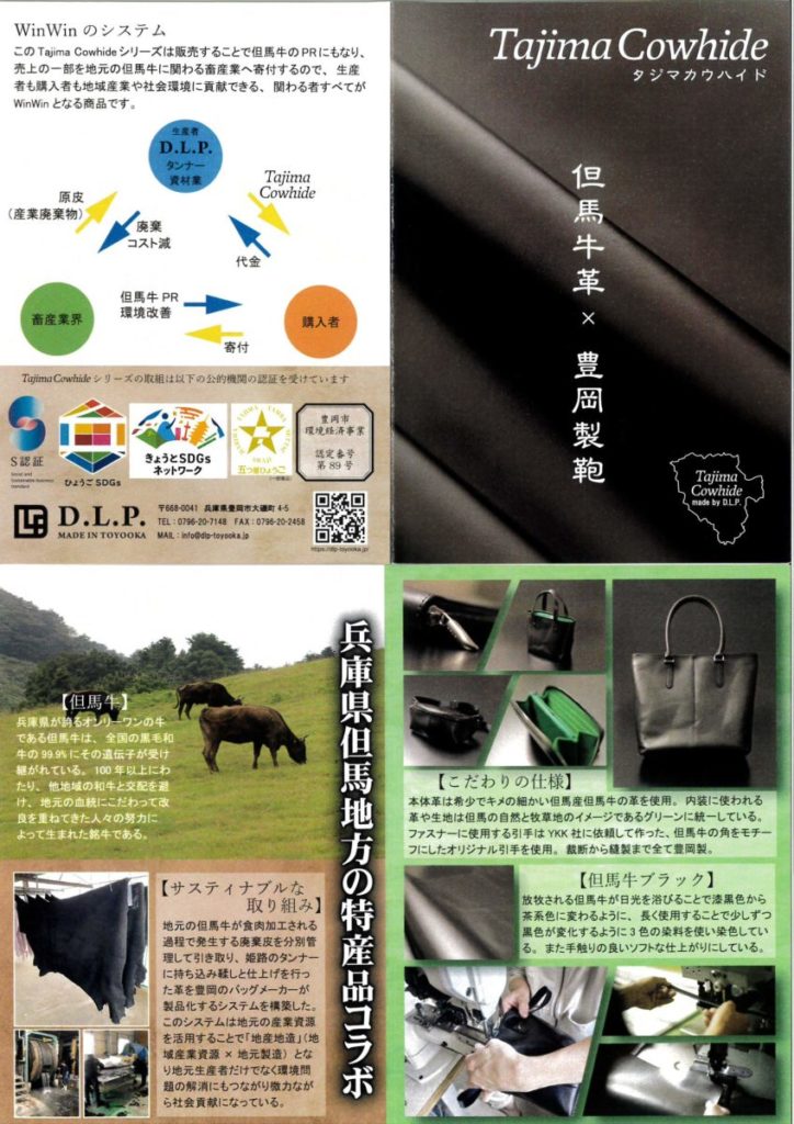 うちは極小規模バッグメーカーなので営業力もなく広告宣伝費もあまりかけていないので知名度がなく少しでもこの取り組みをより多くの人に知っていただきたいのです。このTajima Cowhideシリーズはわが社だけでなく、豊岡の鞄業界、地元但馬牛の畜産家にも応援になる商品です。それがリーフレットを見ていただくとわかると思います。