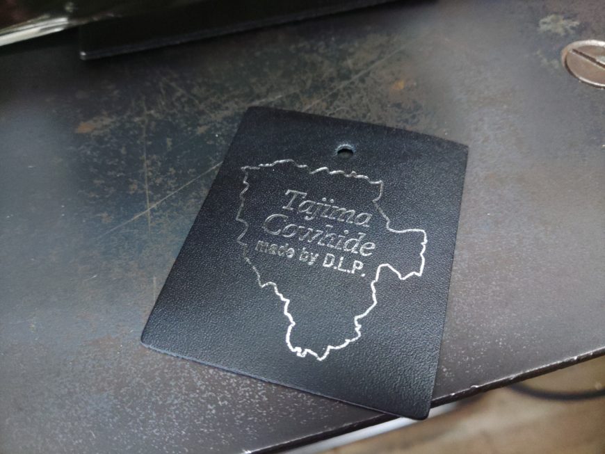 このタグもTajima Cowhideシリーズと同様、但馬産但馬牛の革で作っています。