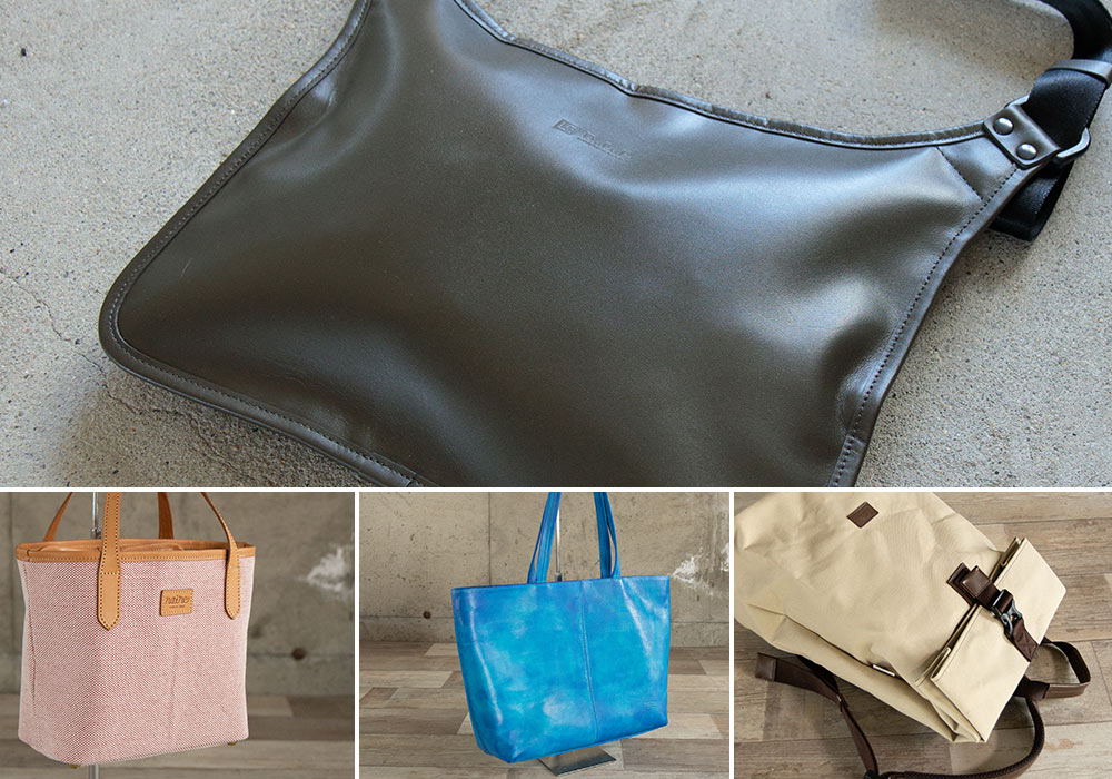 姫路レザーの職人と豊岡の鞄職人の技が融合したオリジナルバッグ。完全防水のレザーリュック、鞄を縫製してから手染めするトートバッグ・ウォレット、バイオ加工をした帆布とヌメ革を使用したトートバッグなど、鞄の町豊岡で制作された上質なオリジナルバッグです。