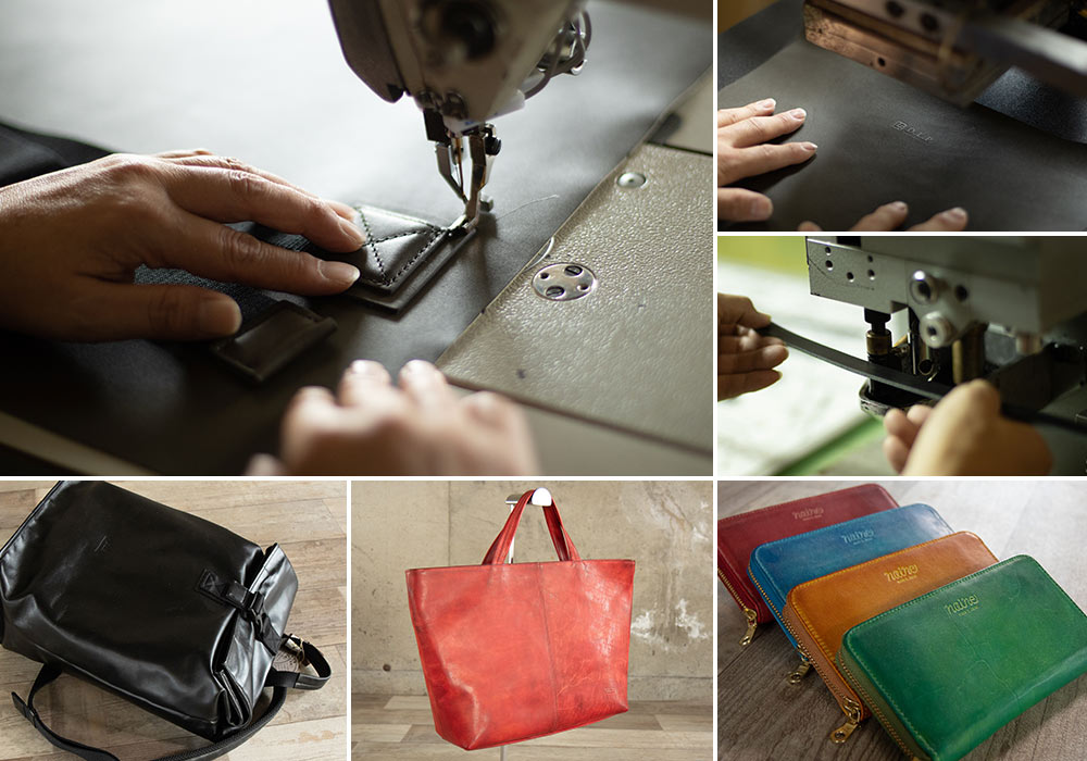 その町で革、帆布生地など天然素材をメインとした鞄創りをしています。決して規模は大きくありませんが、長く鞄に携わってきた職人仲間や理念に賛同していただける協力メーカーのネットワークで納得のいく鞄創りを実現しています。