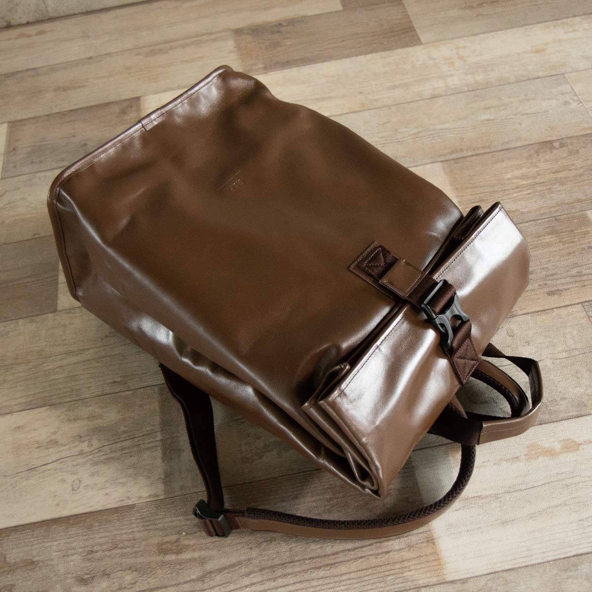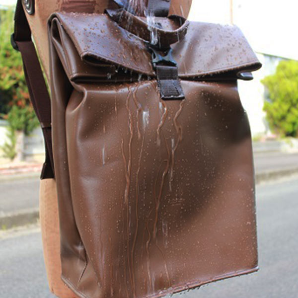 本体に使用している革は姫路のタンナーが開発した革で鞣しの段階に防水剤を入れているのでよくある表面だけの撥水加工ではなく芯まで防水機能があります。その革を鞄の町兵庫県豊岡市のバック職人が超撥水糸で縫製しました。リュック内部の内装生地も撥水性のあるナイロン生地を使い水の侵入を極力防ぎ大事な荷物を水から守る特殊鞄。