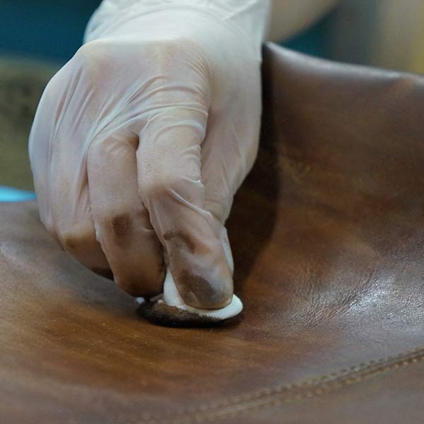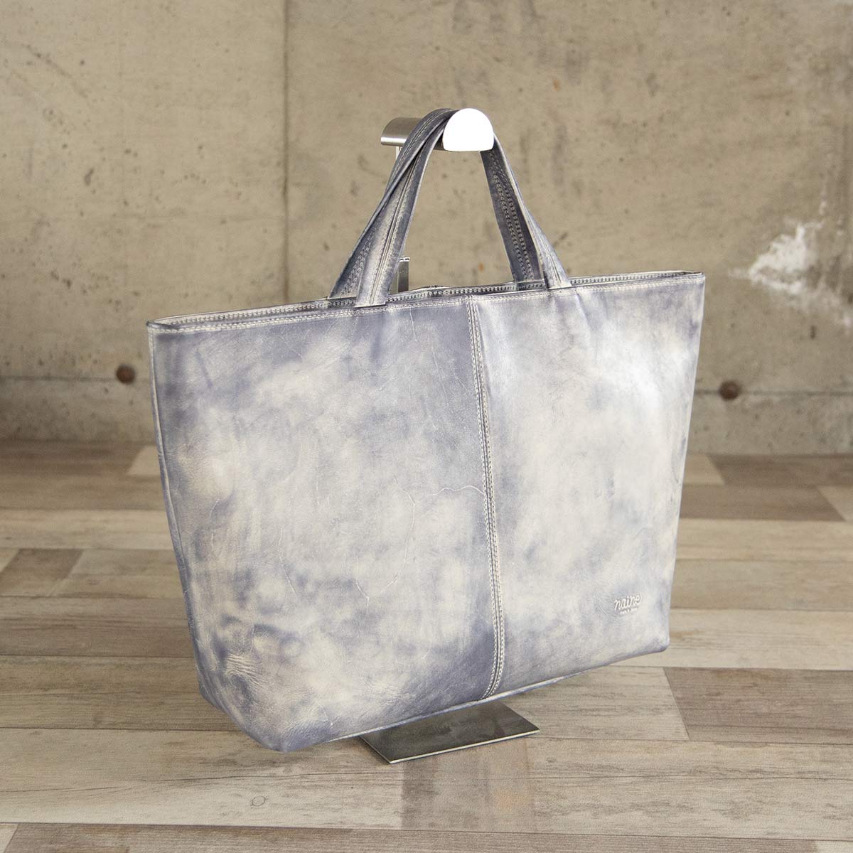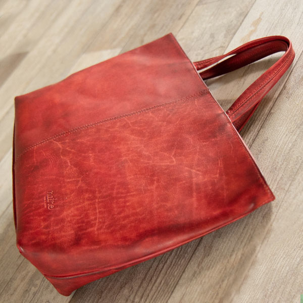 職人が完成したバックに透明感がでる染料を複数回手染めを施すので一体感のある幻想的なムラ感を演出しています。姫路レザーの職人と豊岡のバック職人の技が融合した商品です。 また、開口部のファスナーは金属本来の輝きを維持し耐食性の優れたYKK社の高級ファスナー「EVERBRIGHT」を使用。 内装には温かみのある天然素材である綿ツイルを使用しています。