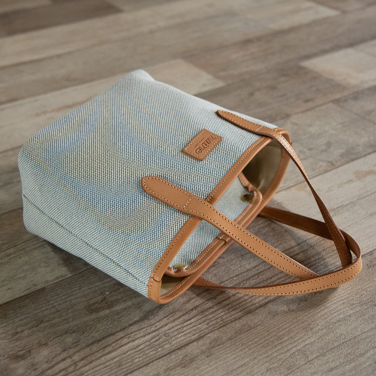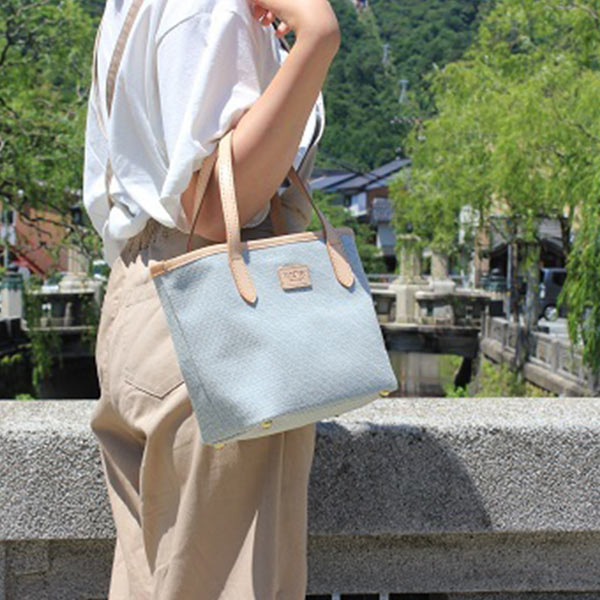 厚めのコットン生地にバイオ加工を施したビンテージ感のある生地を使用。付属革もナチュラルヌメ革を使用しているので、温かみのある優しい雰囲気を出しています。バック本体は大きすぎず小さすぎず絶妙なサイズなのと底にもヌメ革を使っているのでラフにも使える老若男女問わず使えるバックです。鞄の町、豊岡の小さな工房が作ったトートバックです。小さな工房故、大量に作れないのでそういう意味ではレアなバックです。 附属革のナチュラルヌメ革は太陽光や蛍光灯などの光に焼けたり使用すれば傷もつきますがその経年変化をお楽しみください。